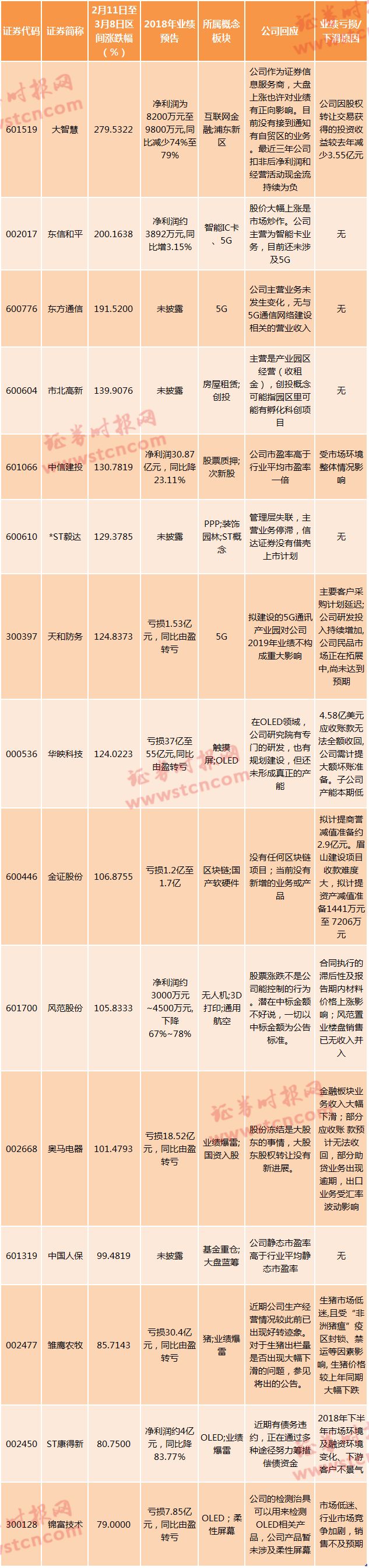 锦富技术、风范股份相关工作人员均对证券时报记者表示,公司经营正常,股价涨跌是市场行为,无法评价。锦富技术工作人员还表示,除公司的检测治具可以用来检测OLED相关产品外(2019年度对相关产品的订单情况尚无法预计),公司产品暂未涉及柔性屏幕;金证股份工作人员表示,行情回暖对公司的客户金融机构是利好,对我们的影响不是直接的;雏鹰农牧工作人员表示,近期公司生产经营情况较此前已出现好转迹象,公司生猪养殖板块仍基本保持正常运行。