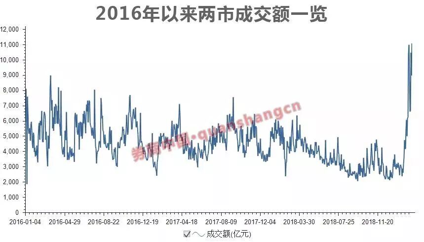 3月8日,沪深两市成交额达到11841亿元,刷新2015年11月以来新高,连续第三个交易日突破万亿,而且上周5个交易日中有4天破万亿。从两市成交额历史来看,两个多月时间,市场情绪彻底被激活,成交额由3000亿元左右飙升至万亿。