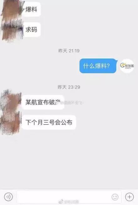 忙着处置资产的海航近期还陷入了破产传闻。2月28日,社交平台传出“海航破产”言论。截屏显示有人向航空博主航旅圈“爆料”:海航将于3月份宣布破产。