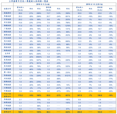 对于一季度券商累计利润同比下滑这一现象,安信证券表示,主要是相比去年同期,2018年一季度股市波动性更大,IPO和债券发行量下降,股权质押业务和资管业务等受到监管严控。