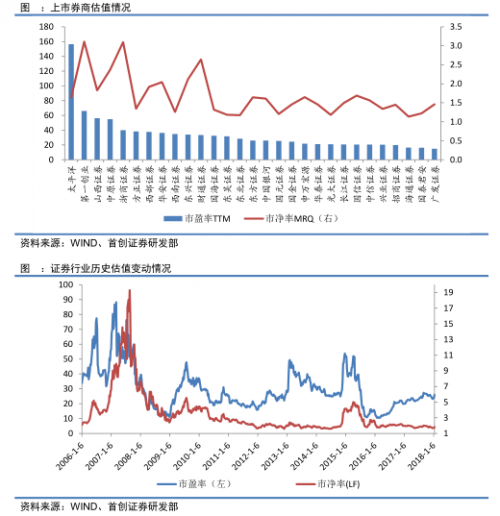 从板块估值情况来看,当前板块估值仍处于历史低位,其中,广发证券PE值最低为14.85倍,太平洋PE最高为156.55倍;PB值最低的是海通证券(600837)1.13倍,最高的是第一创业(002797)3.11倍。