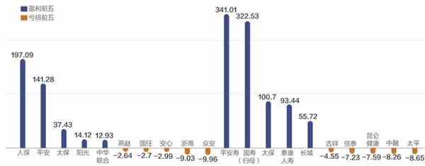 值得注意的是,无论在财险市场还是寿险市场,业绩分化倾向都较为凸显。具体来说,“老六家”包揽了寿险盈利榜的前六位;财险方面,平安财险与人保财险两大巨头共同豪取338亿元净利润,是其余45家盈利财险公司净利润之和的2.67倍。
