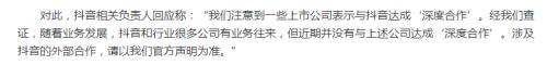 在此火爆下,抖音通过公开报道否认了所谓的“深度合作”,并提出:“请以我们官方声明为准”。