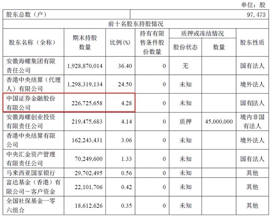 海螺水泥:证金公司一季度持股占比由去年四季末的3.96%,今年一季度增持至4.28%。