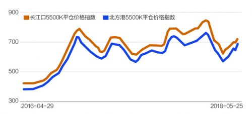 6月8日,易煤网发布的数据显示,最新一期(6月2日~6月8日)易煤北方港动力煤平仓价格指数5000K当期值为597.40元/吨,环比上涨44.20元/吨,涨幅7.99%;5500K当期指数为688.30元/吨,环比上涨45.50元/吨,涨幅7.08%。而在长江口动力煤平仓价格指数方面,5500K当期值为722.6元/吨,环比上涨26.10元/吨,涨幅3.75%。