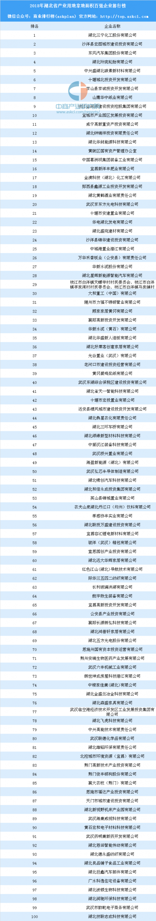产业用地情报:2018年湖北省产业用地拿地面积百强企业排行榜