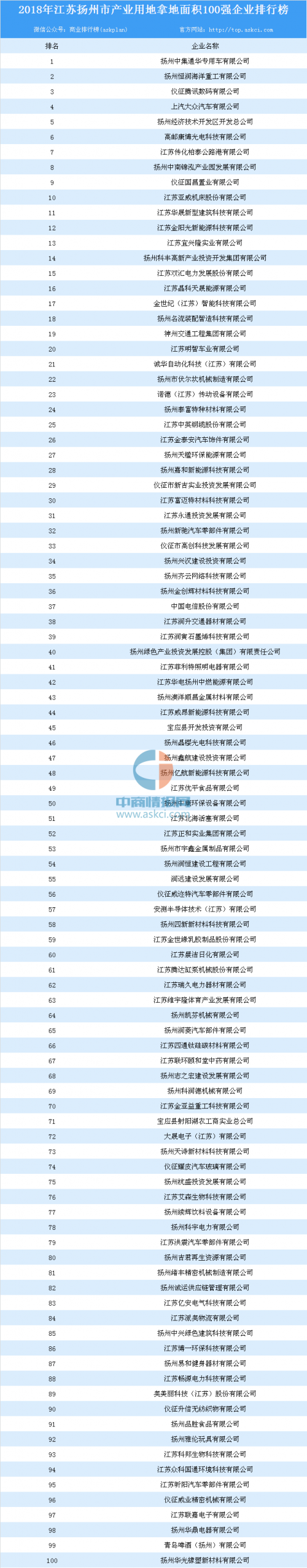 产业用地情报:2018年江苏省扬州市产业用地拿地面积百强企业排行榜