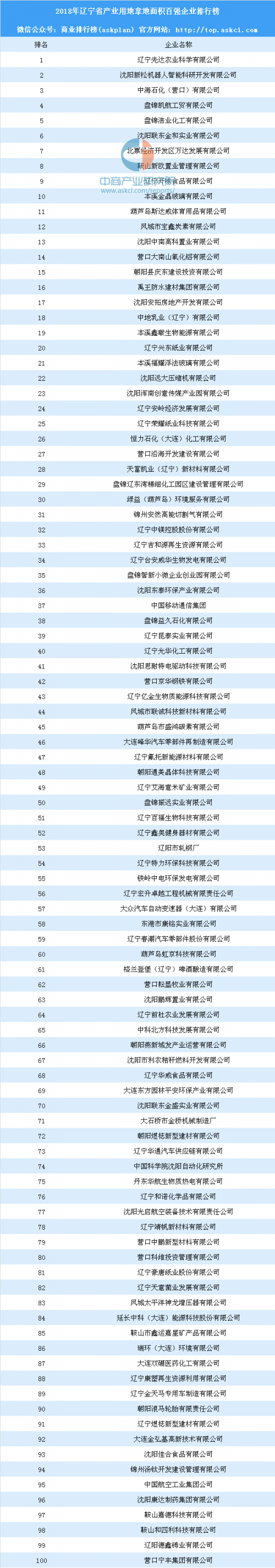 产业用地情报:2018年辽宁省产业用地拿地面积百强企业排行榜
