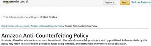 亚马逊反假货规定这样写到:若商家出售或提供假冒产品,亚马逊会立即暂停或终止卖家账户,并销毁该商家在亚马逊物流中心的假货,损失由商家承担。此外,亚马逊也鼓励正品产权所有者举报。