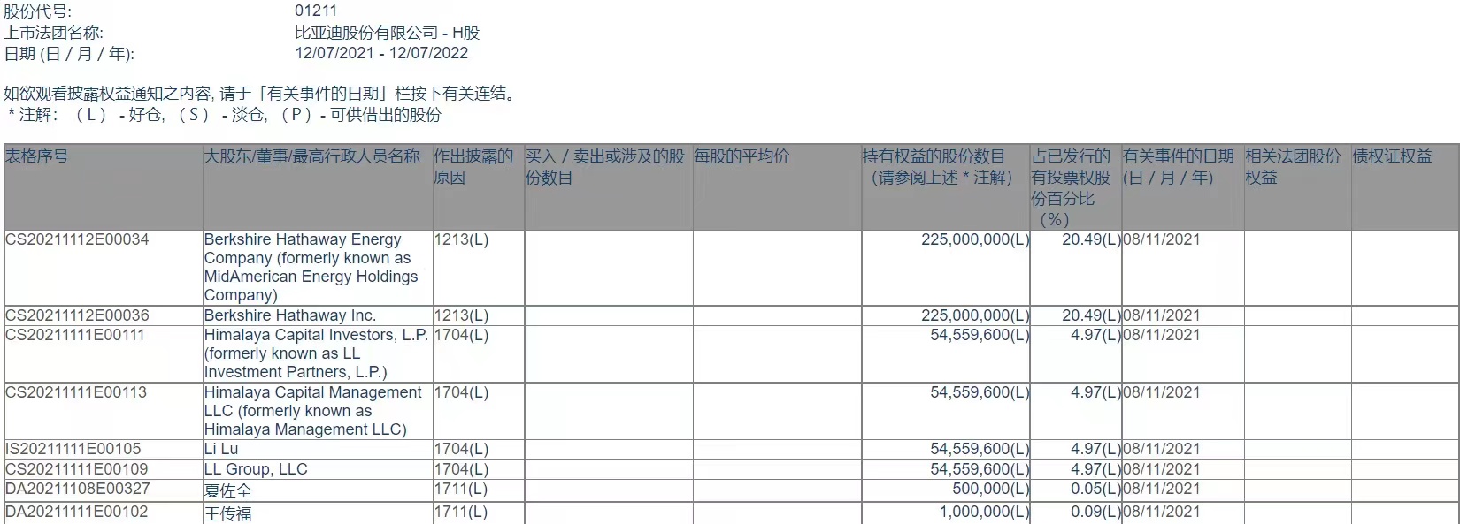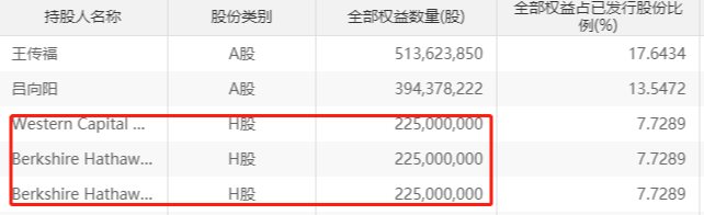 比亚迪大股东权益披露中尚未见到伯克希尔持股变动申报