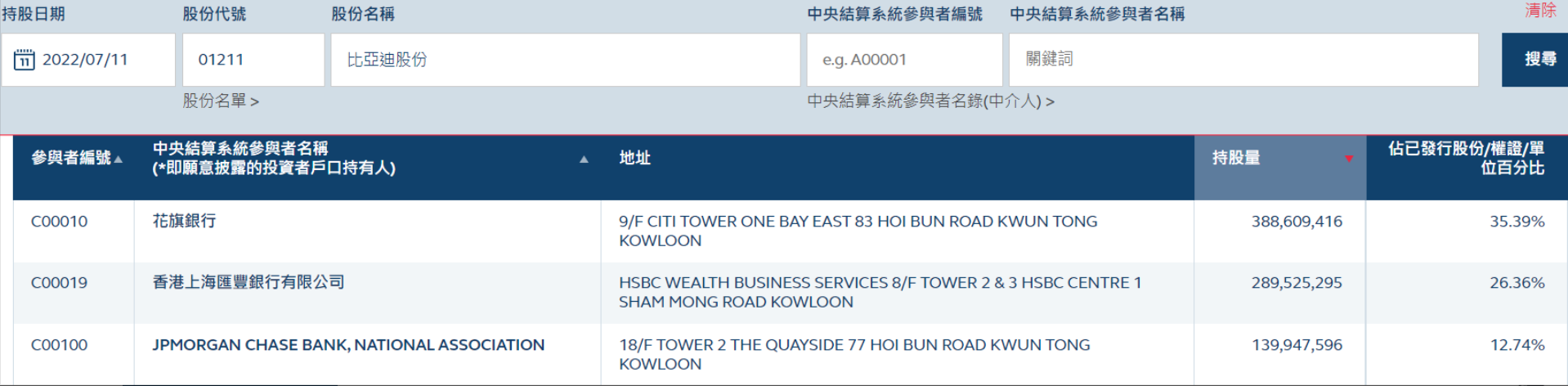 花旗席位的比亚迪H股持股量突然增加逾2亿股